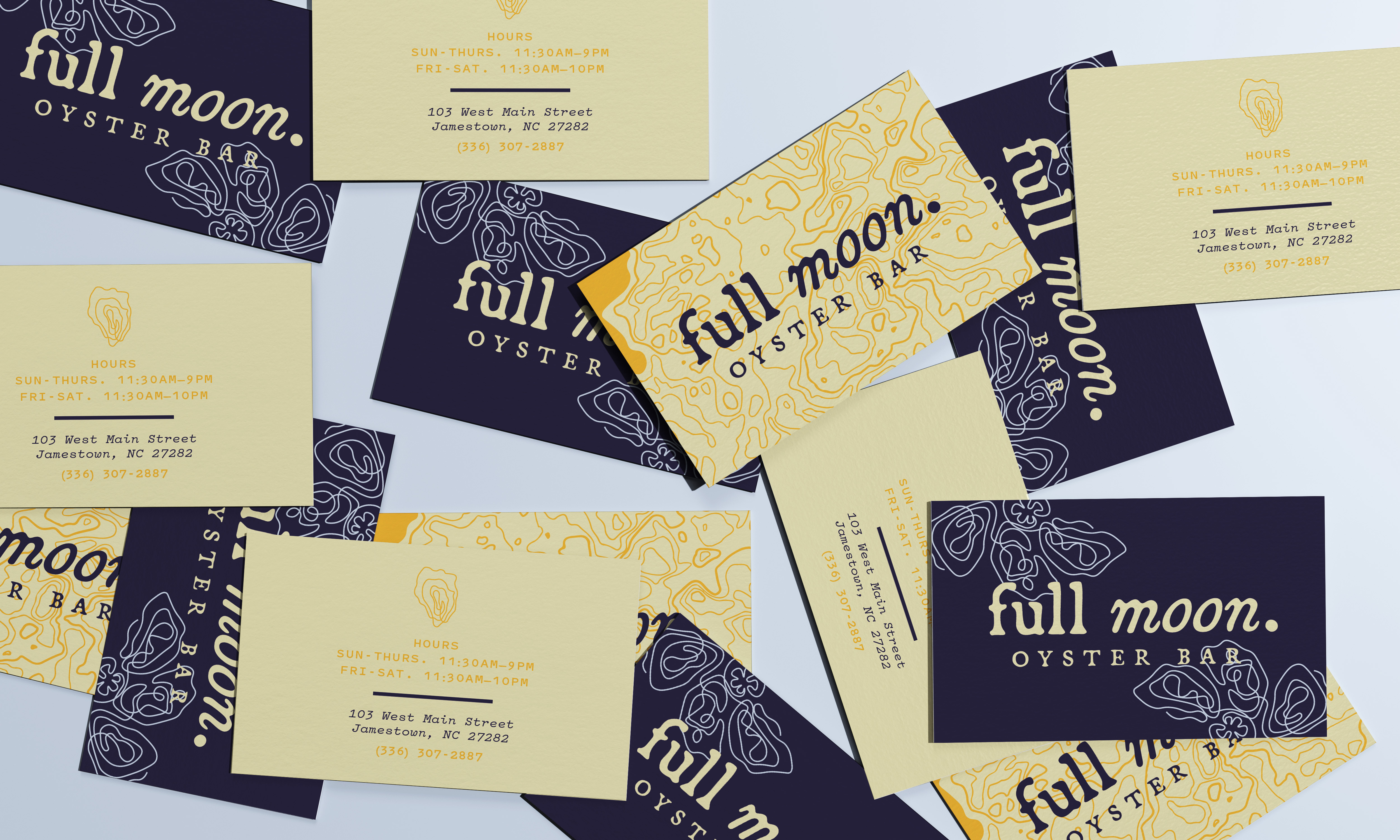 BRANDING + APPLICATIONS | 2024Located in Jamestown, NC, The Full Moon Oyster Bar and Seafood Restaurant serves fresh seafood and southern classics for both lunch and dinner.