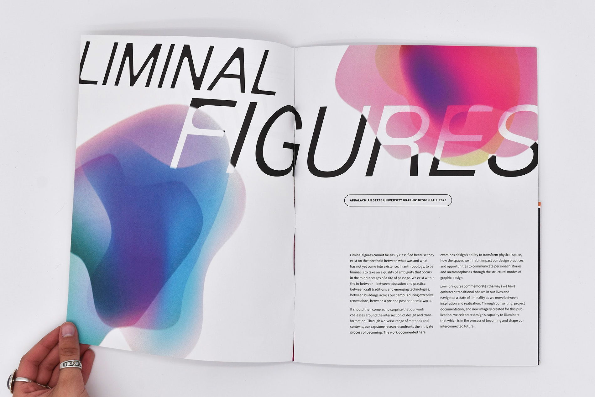 8.5x11 IN. SADDLE-STICH | 2023Liminal Figures commemorates the ways we have embraced transitional phases in our lives and navigated a state of liminality as we move between inspiration and realization. Through our writing, project documentation, and new imagery created for this publication, we celebrate design’s capacity to illuminate that which is in the process of becoming and shape our interconnected future.