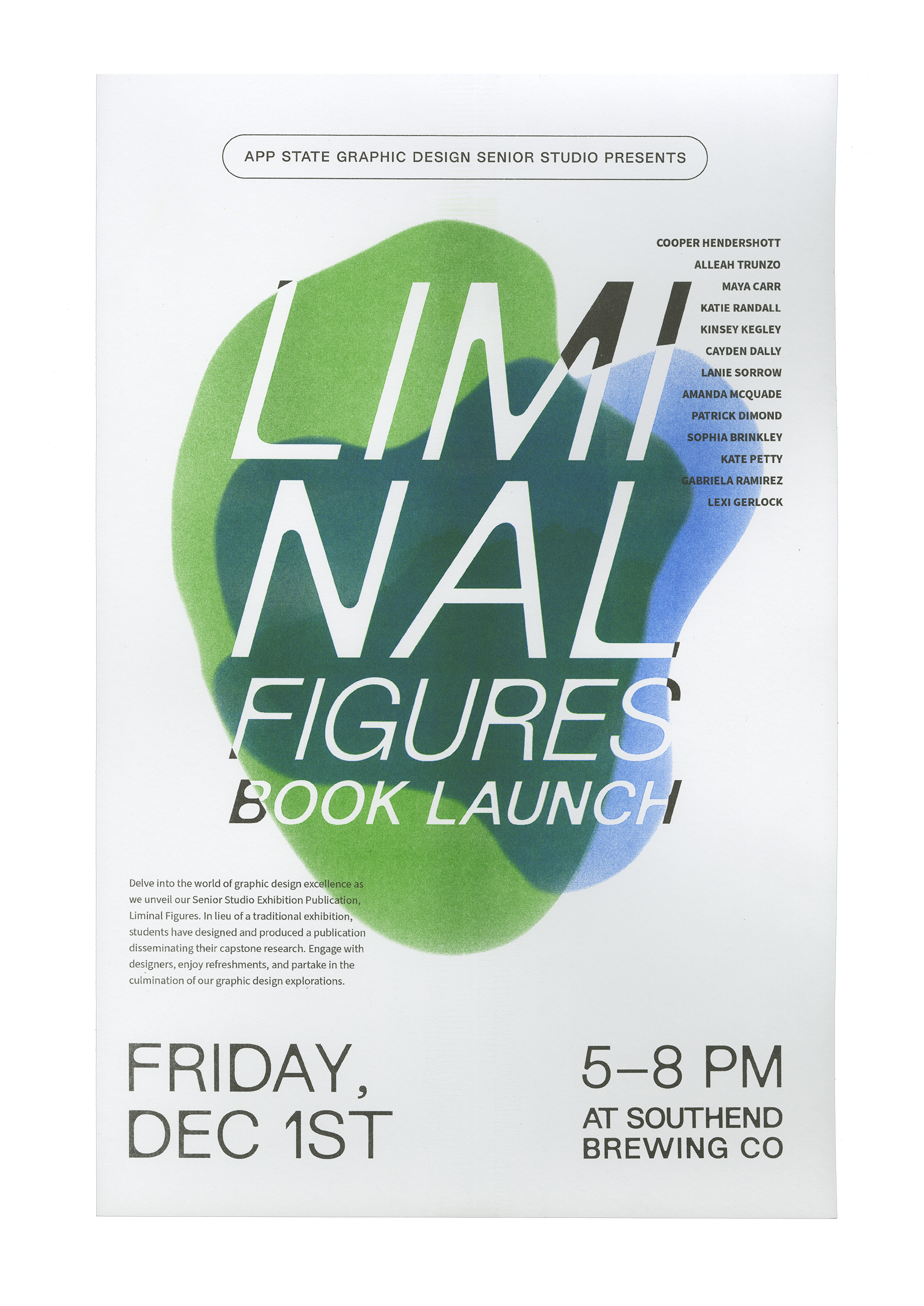 Through a diverse range of methods and contexts, our capstone research confronts the intricate process of becoming. The work documented here examines design’s ability to transform physical space, how the spaces we inhabit impact our design practices, and opportunities to comunicate personal histories and metamorphoses through the structural modes of graphic design.
